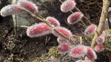 赤色の猫柳!めちゃかわいい。